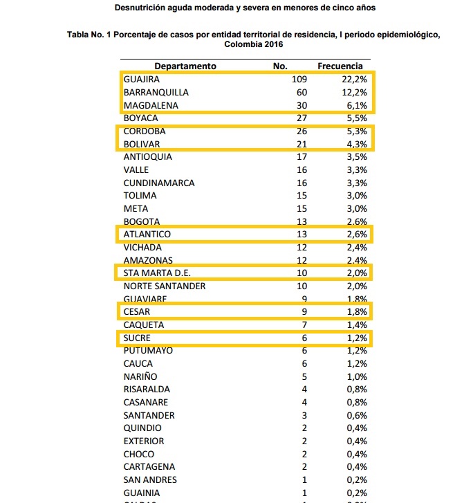 o en La Guajira, con un 27,9 por ciento”. Mas si por falta de alimentos mueren